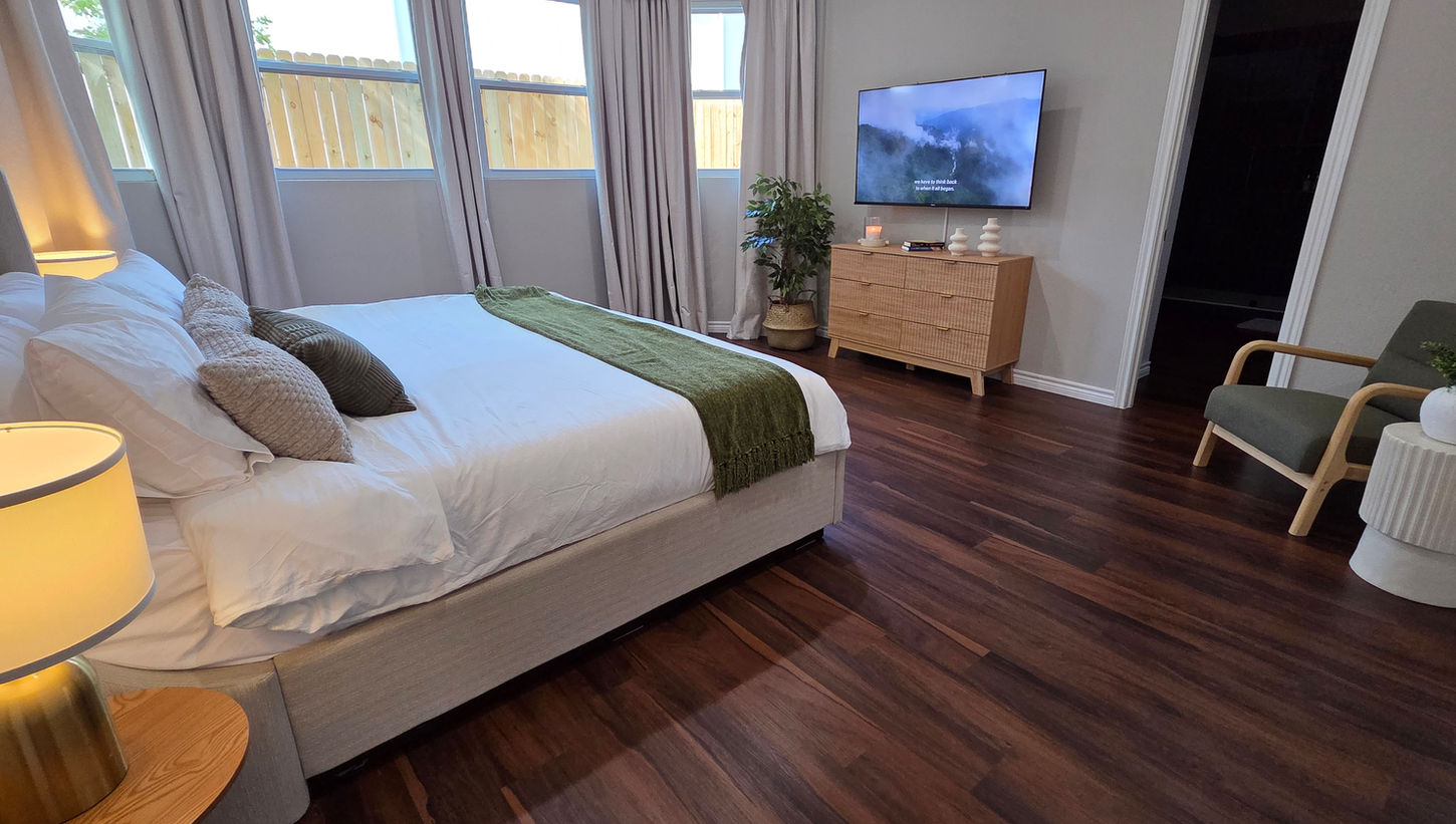 Purchased as a blank investment property, this home was transformed into a fully furnished Airbnb short-term rental. From major furniture pieces to window treatments, lighting, accessories, and layered styling, every element was selected to create a modern, light, and inviting guest experience.